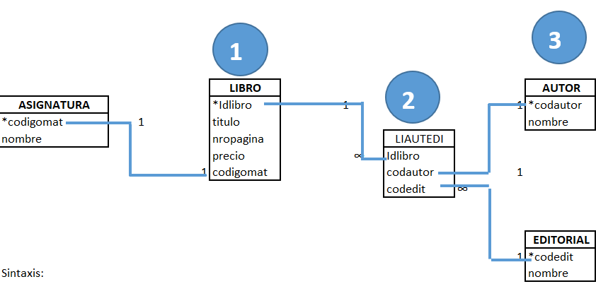 select libro.descripcion 'LIBRO' ,autor.nombre 'AUTOR' ,editorial.nombre 'EDITORIAL' from libro,autor,editorial,liautedi where libro.idlibro=liautedi.idlibro and liautedi.codautor=autor.codautor and editorial.codedit=liautedi.codedit;